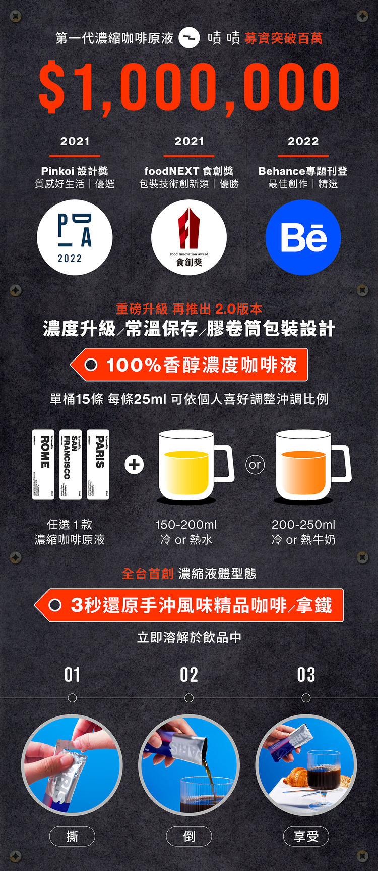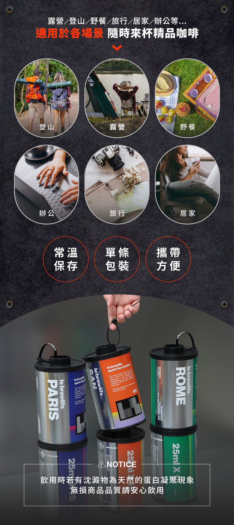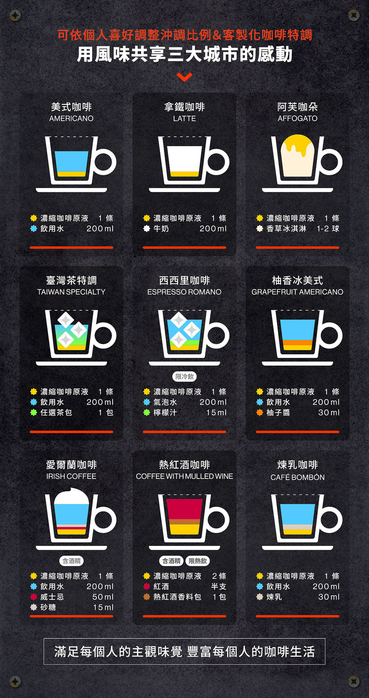 • 常溫攜帶再升級,香醇義式濃縮液,3秒還原精品級咖啡