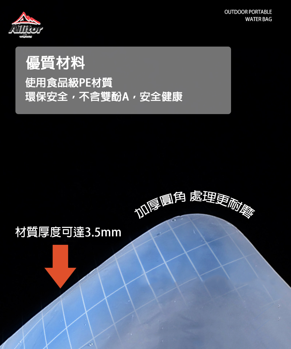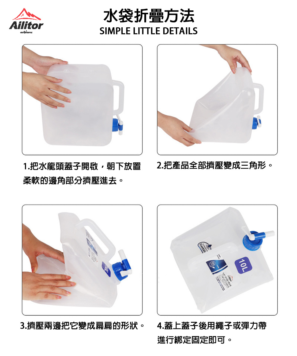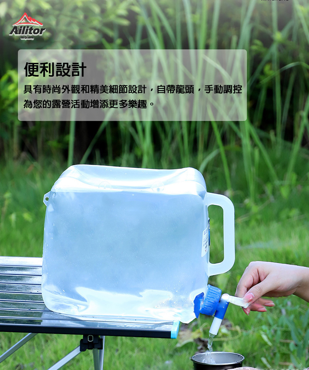 • 超大容量:可容納高達15L的水,方便露營、野營、郊遊等活動中儲存水源。